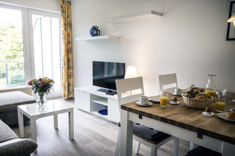 Vom Wohnzimmer aus gelangen Sie auf die Terrasse und in den großzügigen, eingezäunten Garten. Ihr Fahrzeug können Sie direkt vor dem Ferienhaus auf Ihrem exklusiven PKW-Parkplatz kostenlos abstellen.